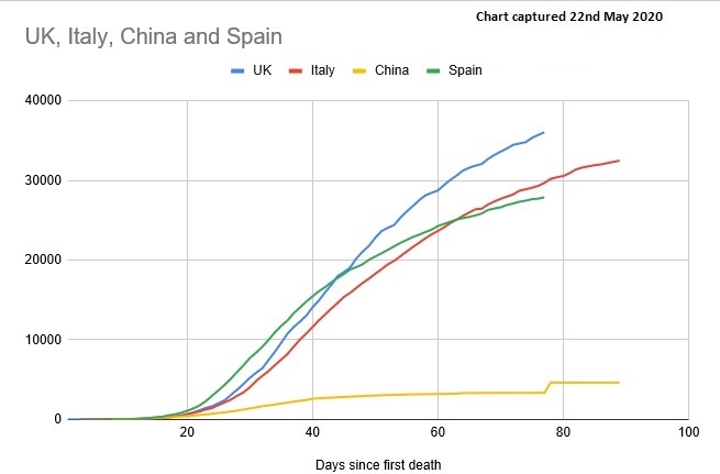 338 deaths were reported by the Government yesterday taking us to 36,042 across the UK. The number of new lab confirmed cases was up slightly at 2,615.